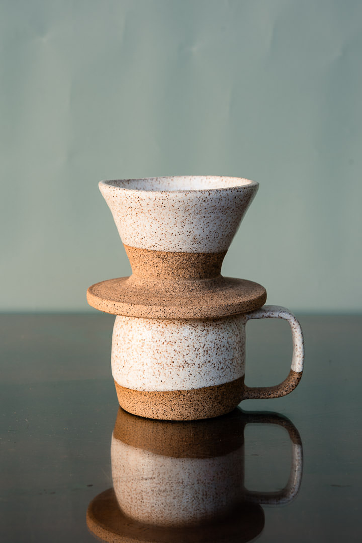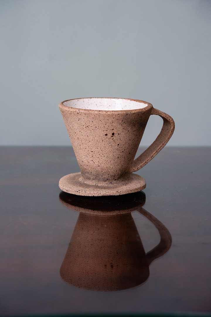 Um mini coador e uma xícara para aquela pausa do cafezin